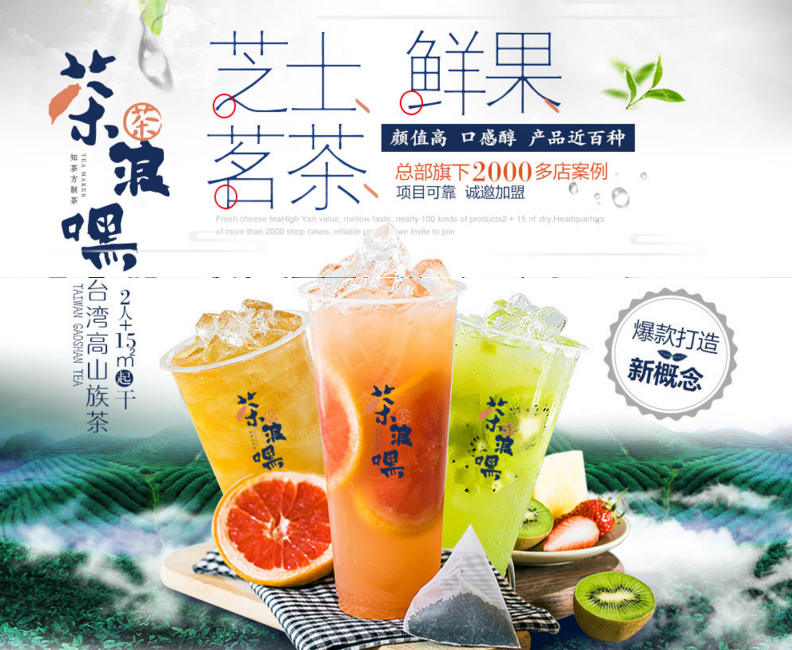 l 口感好,賺錢易:芝士醇香茗茶+清香鮮熟果茶+新式養生茶飲,新西蘭優質奶源+世界各地優質茶種+自然成熟采摘鮮果,芝士茶飲的醇香濃郁與鮮熟果茶清香甜美完美融合,清甜爽口、茗香四溢,口感好,才是賺錢的王道。