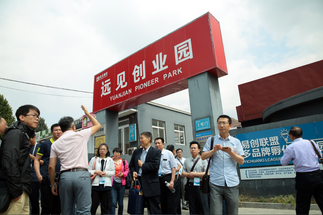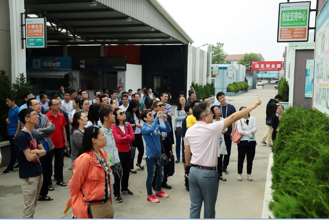企業游學團成員匯聚遠見創業園門口,從這里出發,認識遠見。