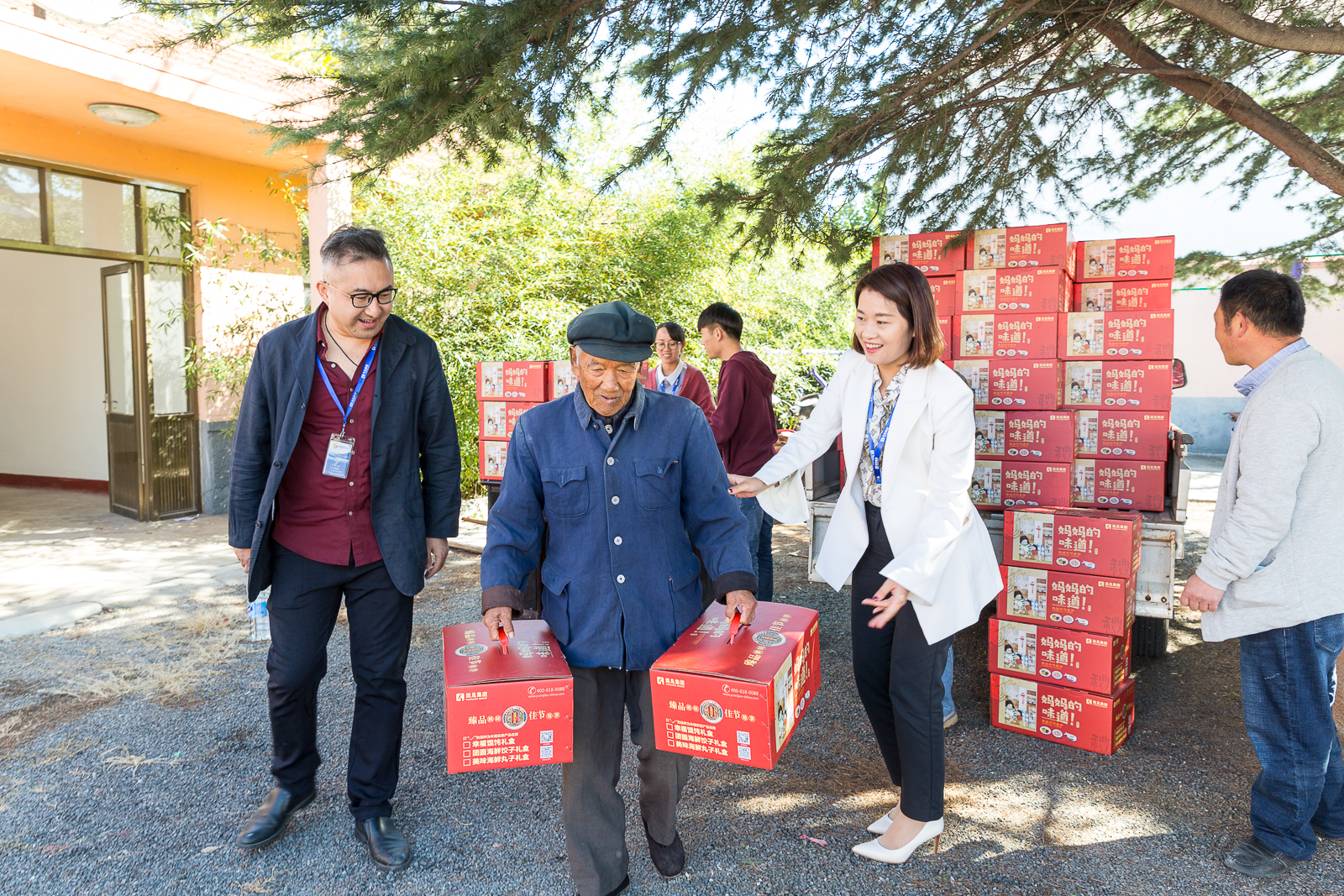 老人們一個個臉上洋溢著幸福的笑容,手里拿滿了禮盒,有些拿不過來的用小推車、電動車載著,老人們說,被人記掛著感覺真好,感謝遠見集團黨支部。